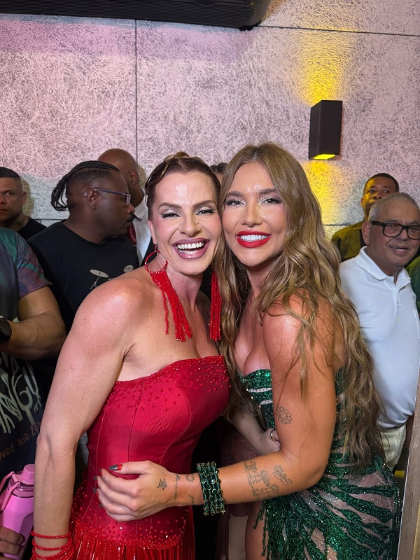 As fotos da noite registram Karen e Virgínia juntas na celebração, além de cliques individuais das duas, destacando a força e o brilho das mulheres que protagonizam a cena carnavalesca.