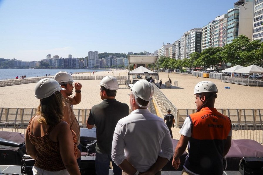 A Prefeitura de Niterói deu mais um passo importante na organização do Réveillon 2026. Nesta terça-feira (30), foi realizada a vistoria técnica do palco que receberá os grandes shows da virada, na Praia de Icaraí, reforçando o compromisso com a segurança e a qualidade da maior festa popular da cidade. A inspeção reuniu representantes da Neltur, da Defesa Civil, técnicos de segurança, do Corpo de Bombeiros e de outros órgãos do governo municipal. As equipes avaliaram toda a estrutura montada, os sistemas elétricos, os acessos, as saídas de emergência e as condições operacionais, para garantir total segurança ao público estimado em cerca de 400 mil pessoas.