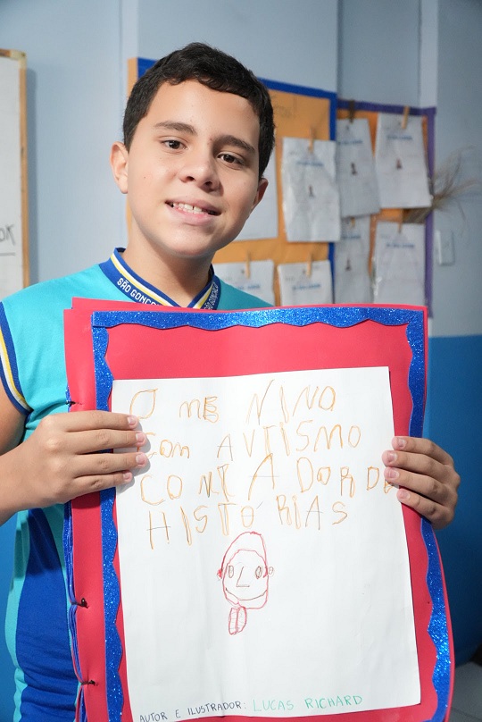 “Eu percebi que o Lucas estava com problemas de autoestima, timidez, dificuldade de interação no grupo. Então, a criação do livro foi uma ideia para dialogar com a dificuldade que ele estava apresentando em sala de aula com fonemas, mas impulsionando a autoestima e o colocando como protagonista do processo pedagógico. Quando ele se vê enquanto autor do livro, apresentando para a escola inteira, consegue tirar as dúvidas dos colegas sobre o Autismo, é possível desenvolver o potencial dele, unindo com a parte do conteúdo pedagógico”, afirmou a professora Ana Cristina Figueiredo.